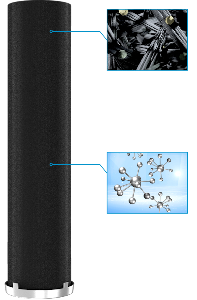 毛細纖維結(jié)合復方活性炭粉末 低溫鑄造而成 強大的比表面積 使活性炭得以與水充分接觸 吸附效率高,過濾能力強