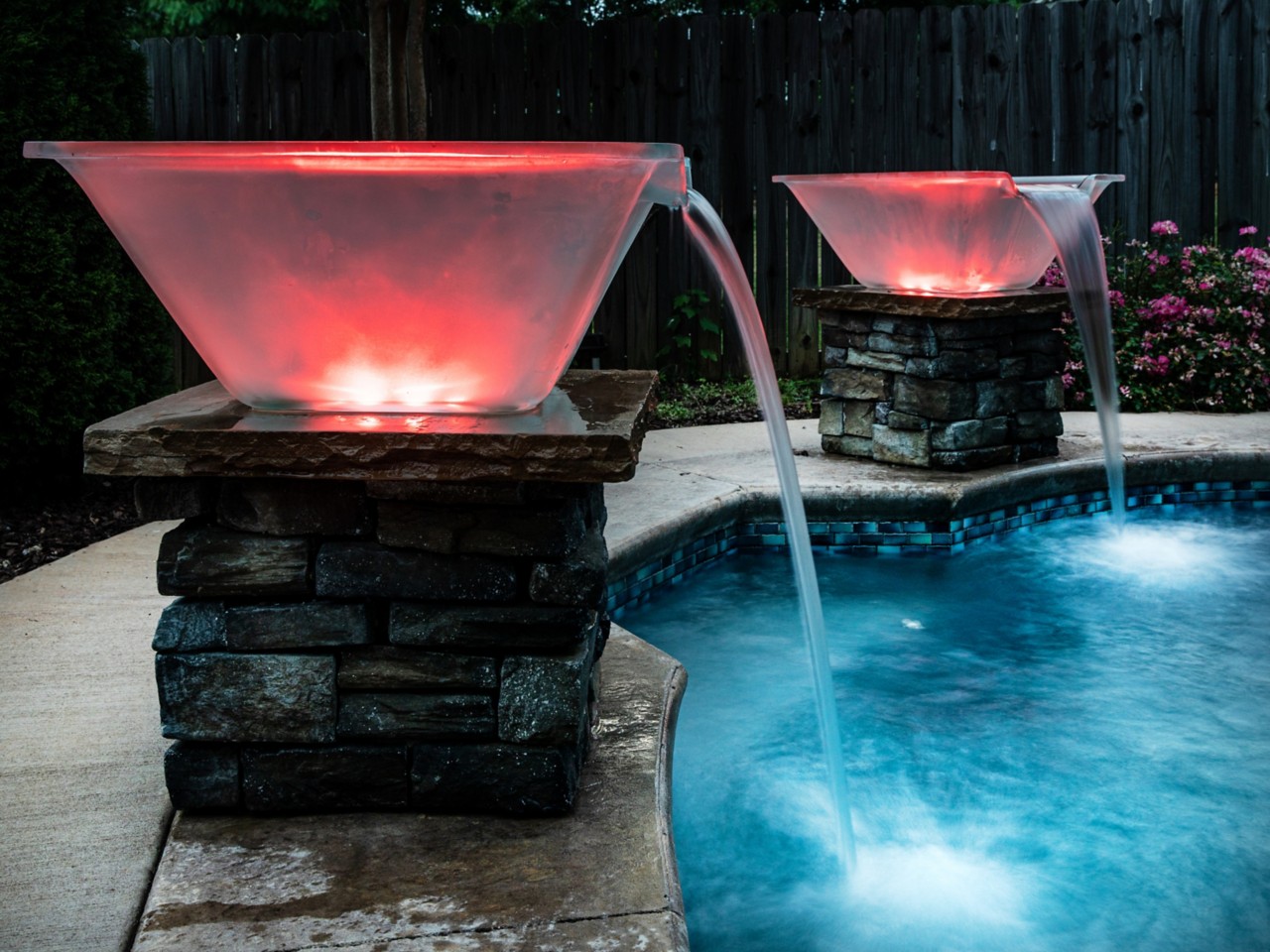 低壓 LED 光源和低流量需求可實現多種水景的組合,MagicBowl 漂亮經濟,易于安裝,新建改建泳池的完美選 擇,MagicBowl 有燈光功能,有兩個可編程選項,一個用于誘人的火焰效果,另一個充滿活力的 IntelliBrite? LED 5G 泳池及水療池的燈光彩色模式。